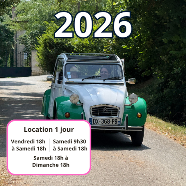 Possible de récupérer le véhicule la veille à 18h ou le jour J à 9h30, retour le dimanche à 18h au plus tard.